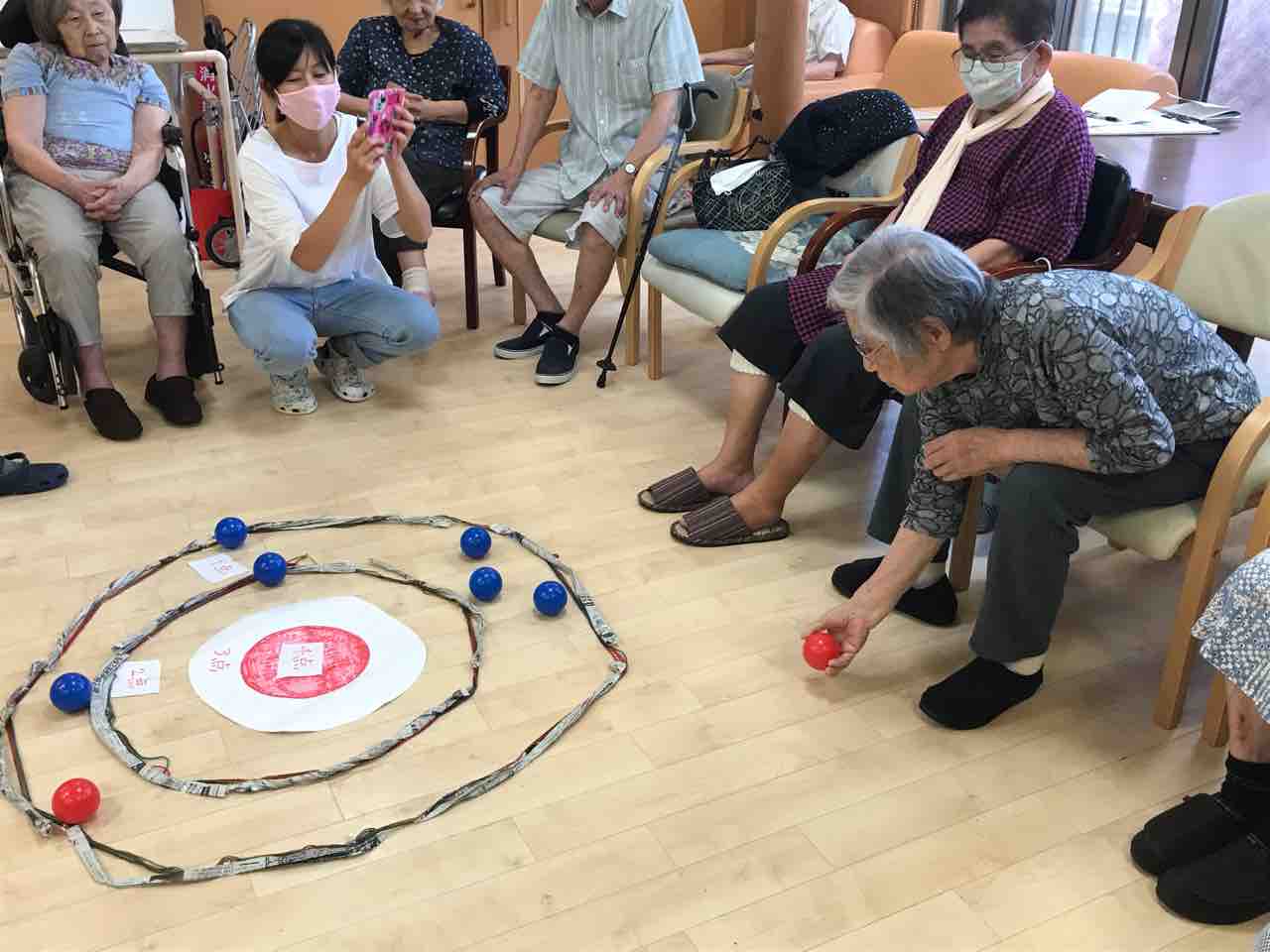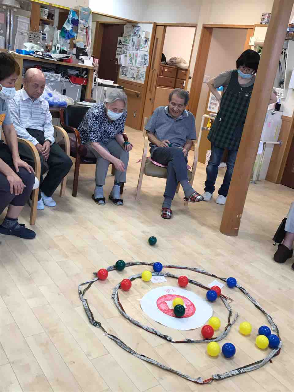先日はフロアで皆さんと一緒にボールを使ったゲームで楽しいひと時をすごしました