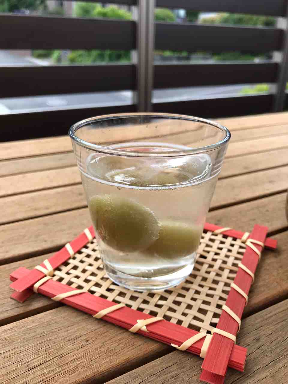洗ってヘタを取り、一度、凍らせてから氷砂糖と一緒に漬け込みました。