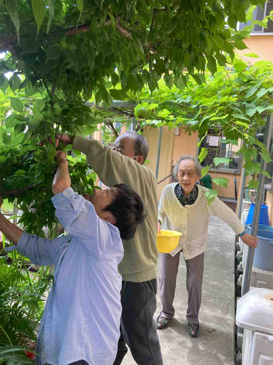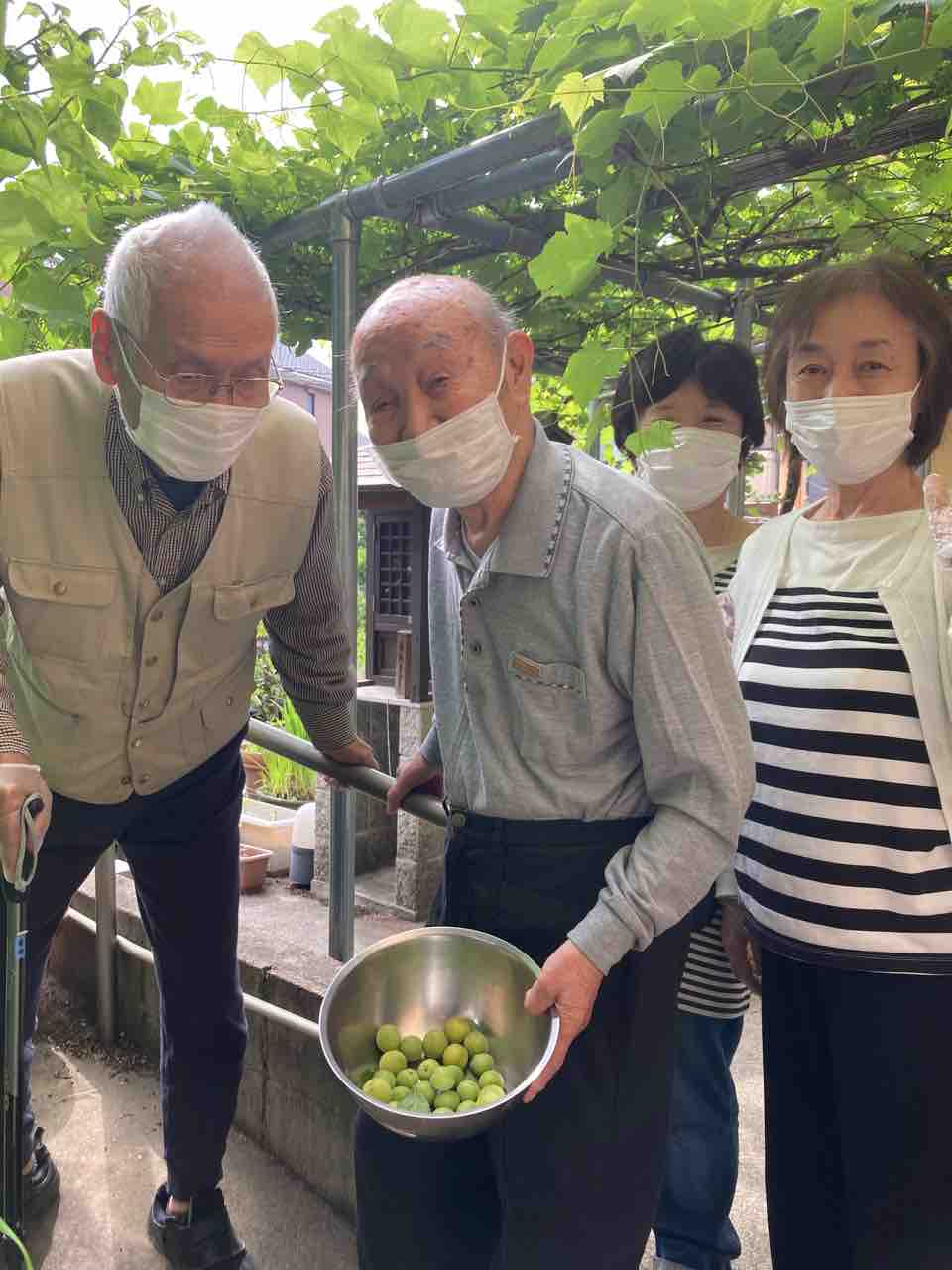 小規模ひらばりで、今年も梅が取れたので皆さんで収穫をしました。