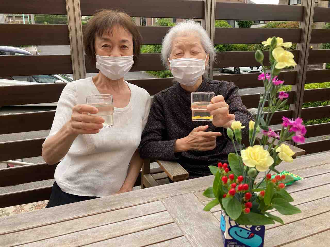 天気の良い日に皆さんで「梅ジュース」を飲みながら日光浴を行いました。